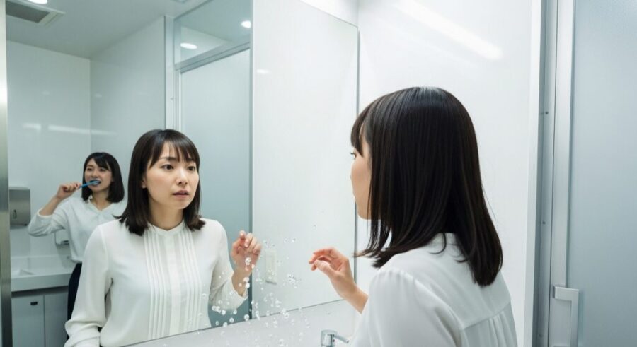 また、物理的なスペースの問題も深刻です。多くのオフィスビルのトイレは、必要最低限のスペースしか確保されていません。狭い洗面台で、隣の人が口を大きく開けて歯ブラシを動かしている姿が視界に入ることは、想像以上の視覚的ストレスを周囲に与えます。鏡越しに他人の口の中が見えてしまったり、歯磨き粉を含んだ泡が自分の服や持ち物に飛び散るリスクを感じたりすることで、本来リラックスできるはずの休憩時間が台無しになってしまうのです。