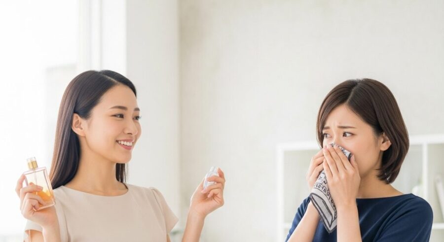 「いい匂いだから周りも不快ではないはず」という思い込みこそが、最大のリスクです。香りの感じ方には大きな個人差があり、ある人にとっては「リラックスできる香り」でも、別の人にとっては「頭痛を誘発する強い刺激」となることがあります。一部の人は香り成分に敏感に反応することがあり、頭痛や倦怠感などの症状を訴えるケースもあり、「化学物質過敏症」との関連も指摘されています。